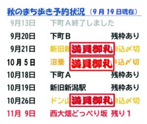 10月18日(土)下町Aコース と 10月19日(日)新旧新潟駅コース のみ。申込はお早めに。
